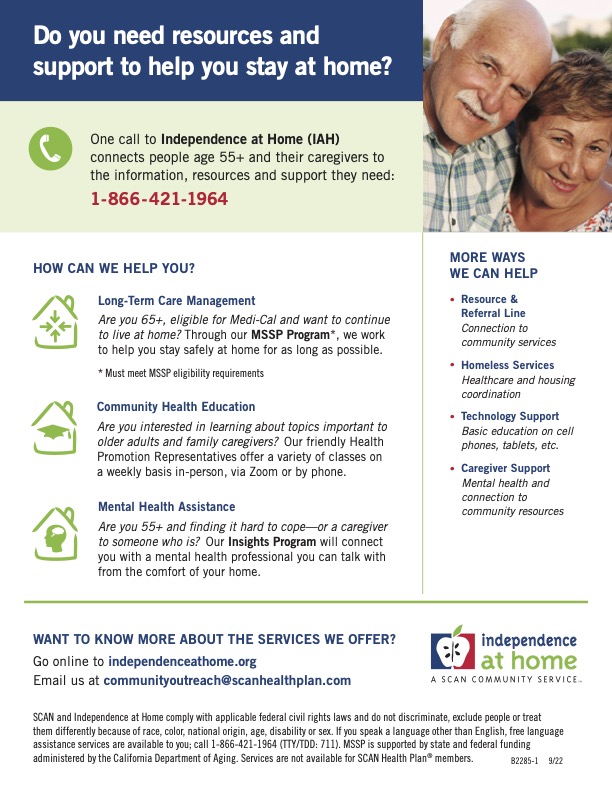 - Invest in the community through support of community based organizations and partnering with city, county and statewide efforts in key areas impacting older adults.