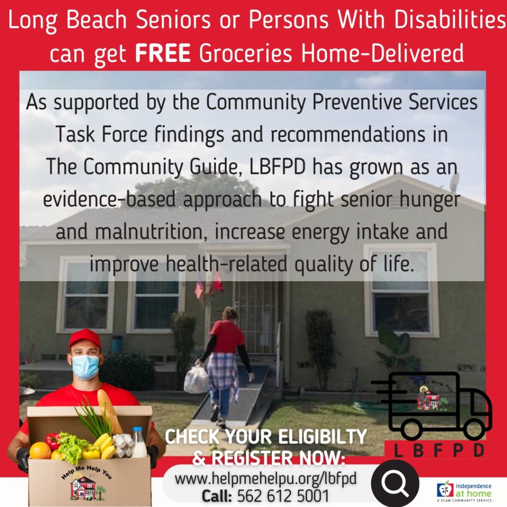 Eligible senior residents and persons with disabilities (physical or mental) can qualify for Food Pantry items delivered straight to their doorsteps. This service is for those residing in the City of Long Beach and the surrounding area, including delivery to cities within a 10-mile radius of 90813.