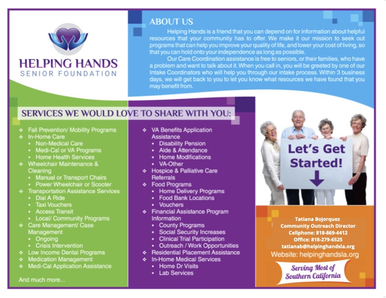 Helping Hands is a 501(c)3 offering a free care planning service to seniors of any income, insurance, and/or health condition.