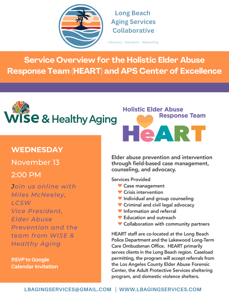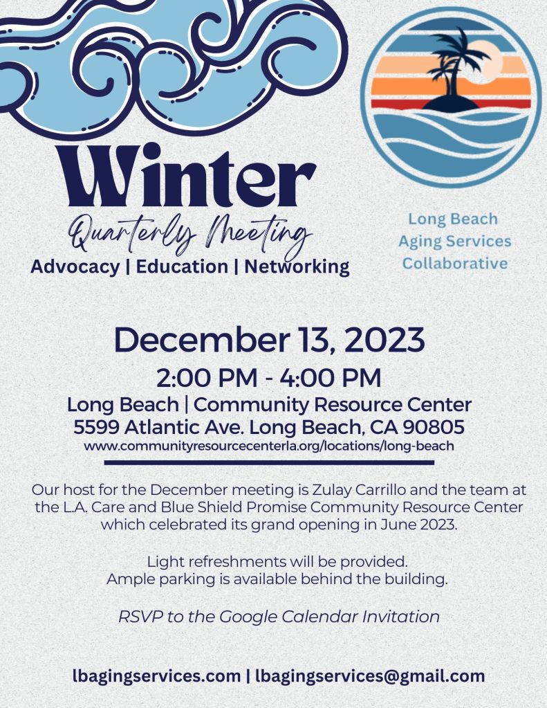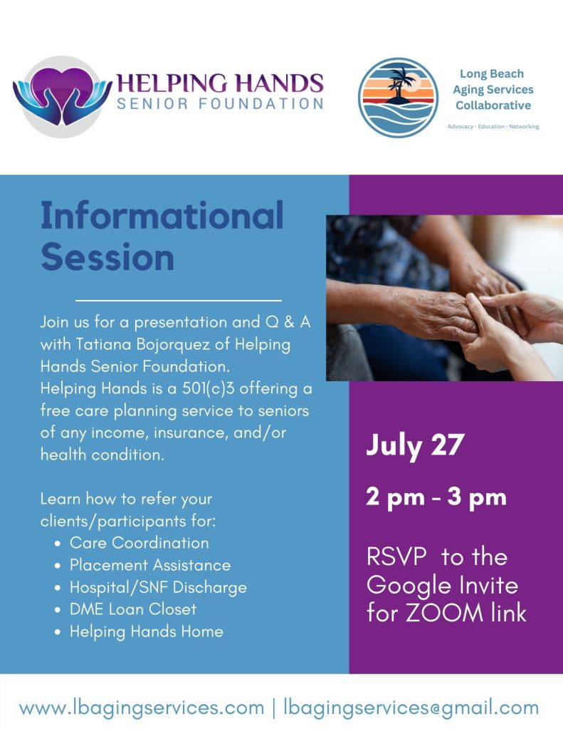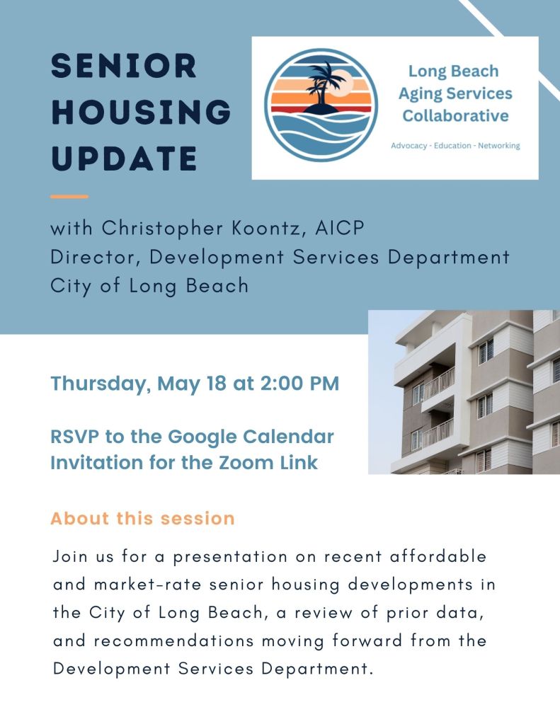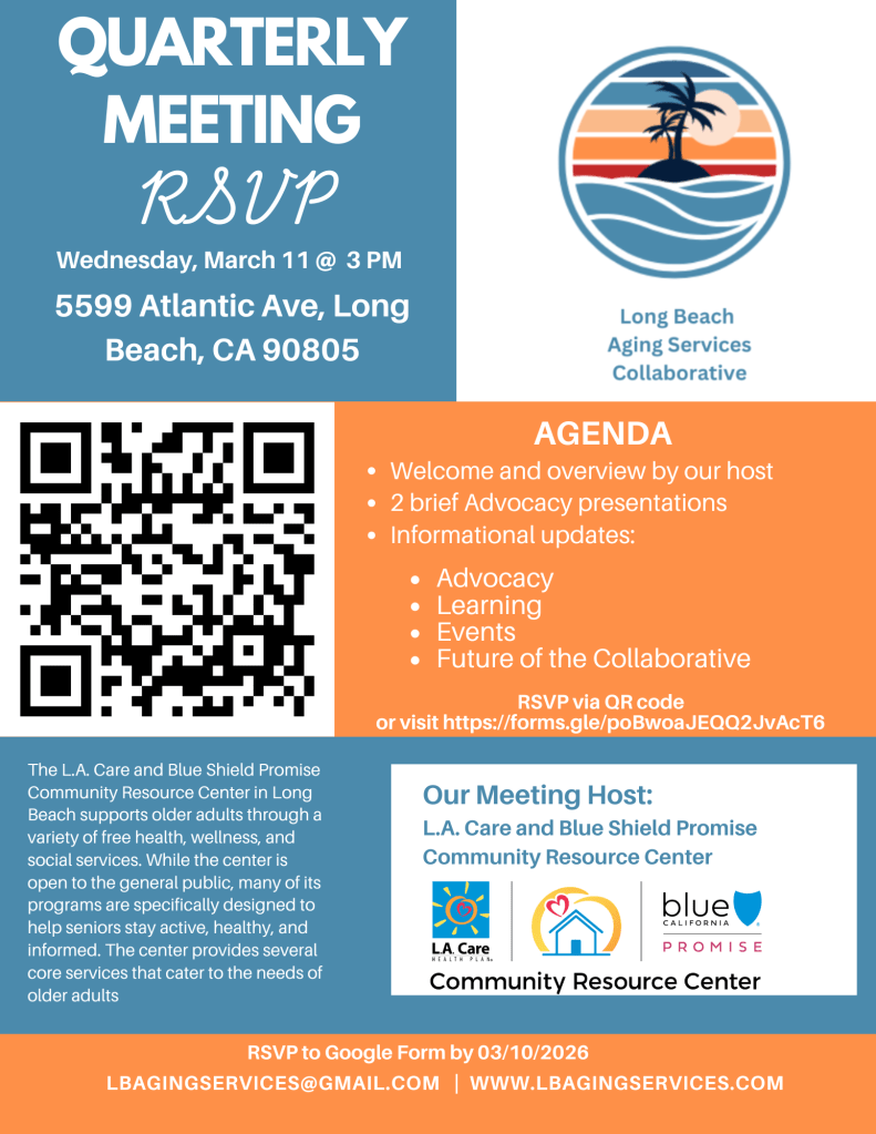 We need members to participate in a workgroup that will plan the future of the Long Beach Aging Services Collaborative.